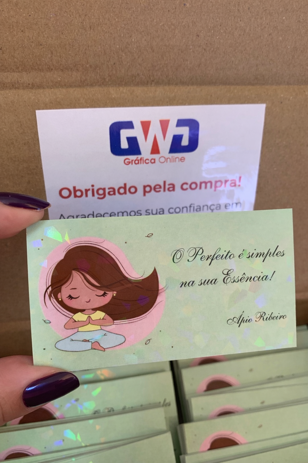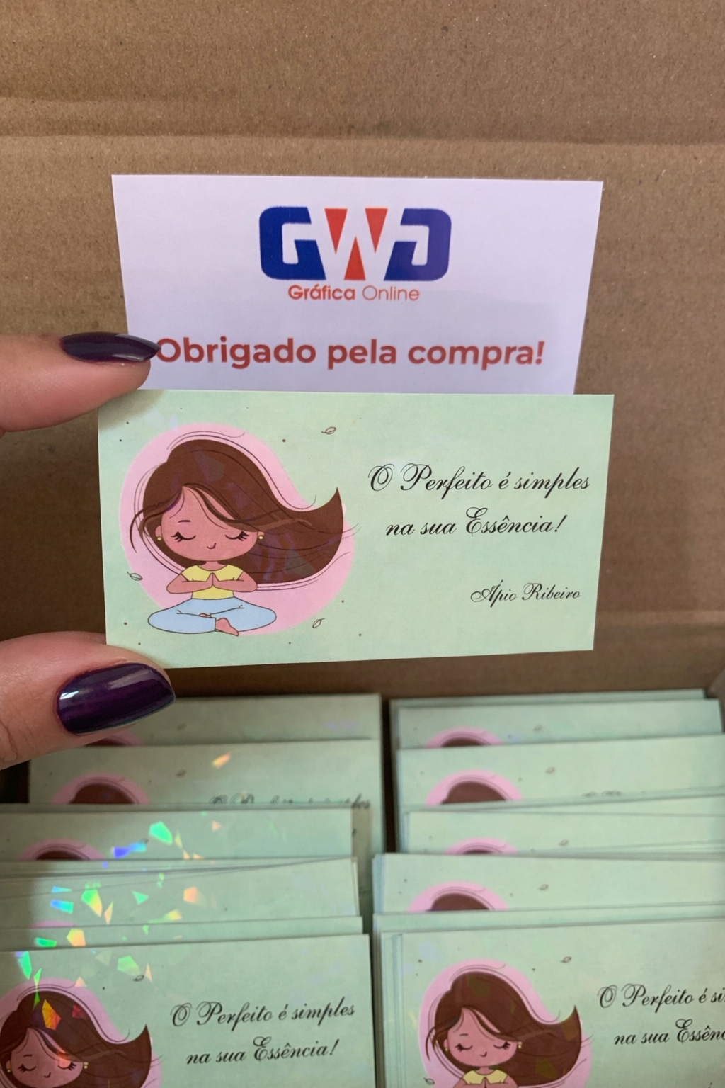 Esses cartões de visita conta com um ótimo acabamento, é feito uma laminação transparente, com projeções holográficas, deixando ele mais diferenciado.